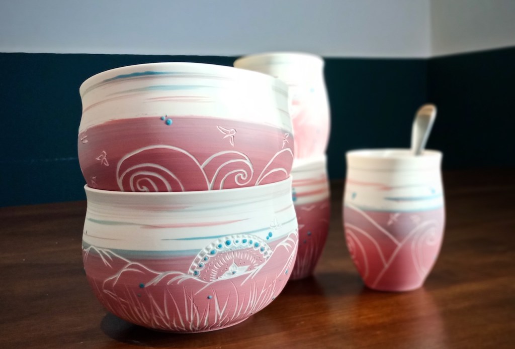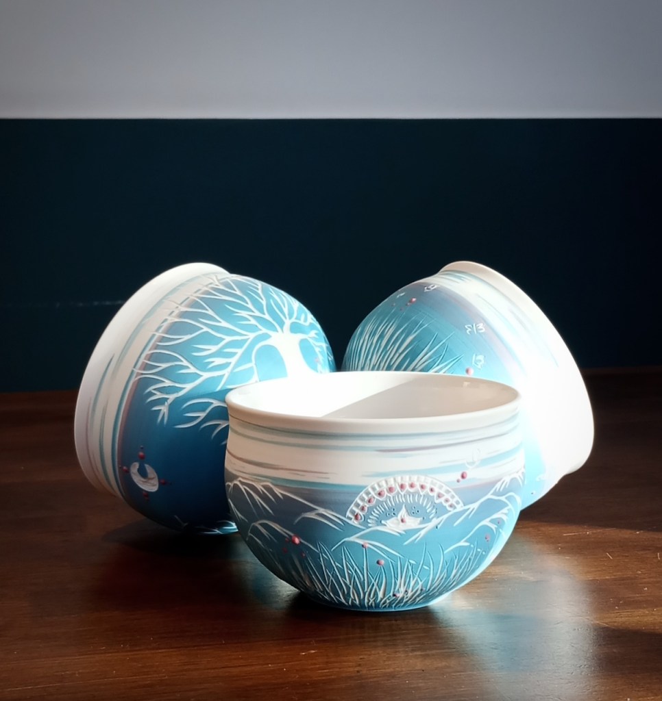 Bol, tasse, mug, pichet, théière, saladier, vase, carillon, suspension.. prennent naissance dans mon atelier en Chartreuse à Miribel-les-échelles.