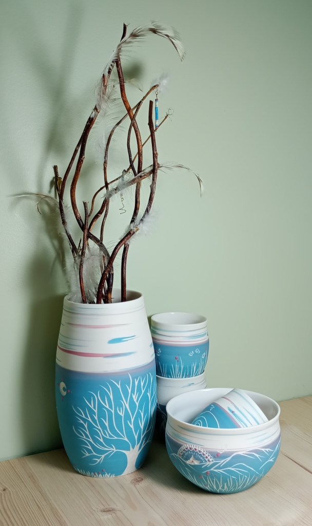 Je travaille la Porcelaine au tournage dans une gamme de pièces utilitaires & décoratives.
