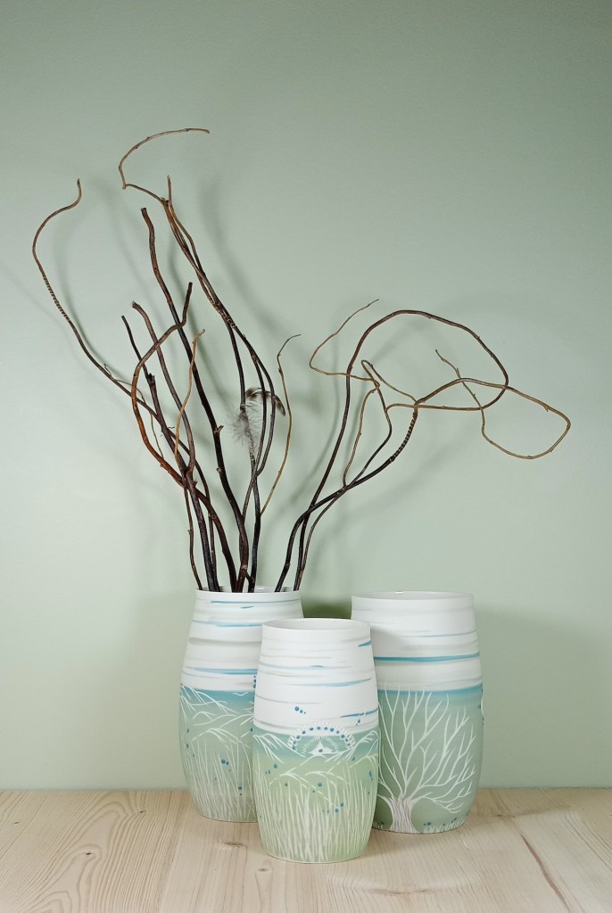Les motifs creusés dans la matière évoquent des paysages remplis de douceur, de fraîcheur et d’apaisement.